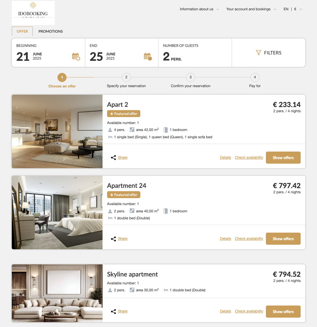 A new offer-highlighting module has appeared in our Booking Engine, allowing flexible control over the order of displayed search results. You can now promote selected offers—based on the number of guests—to increase their visibility in listings.