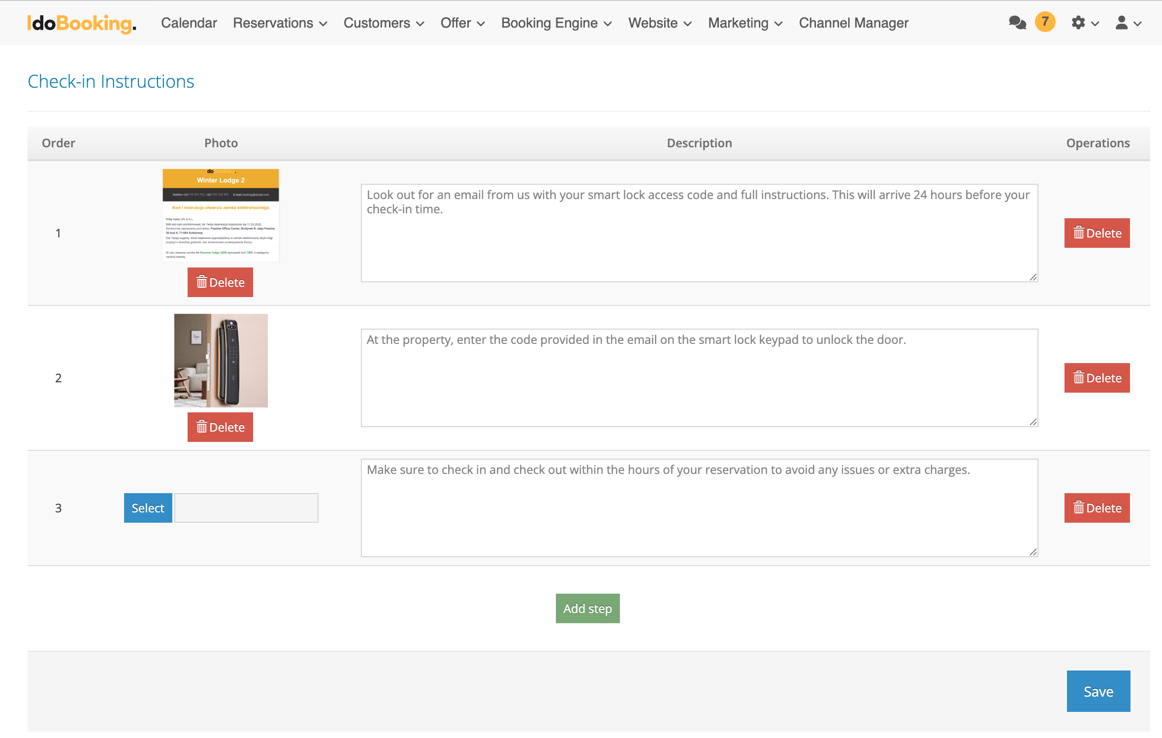 - Configure check-in details – add a clear access description, step-by-step instructions, and photos to help with arrival and check-in