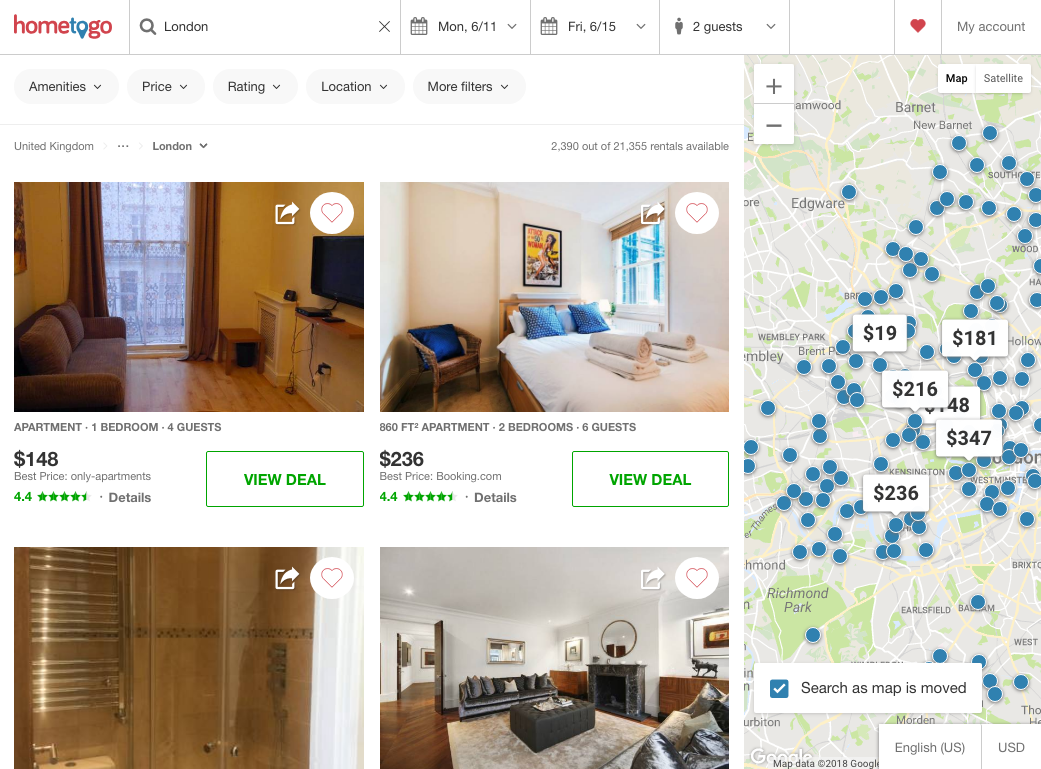 HomeToGo is one of the world's largest search engines comparing holiday rental prices. It is an excellent tool for people looking for accommodation on their own. Thanks to compering prices from various services, users can book the best offers out of about seven million listings available on HomeToGo.