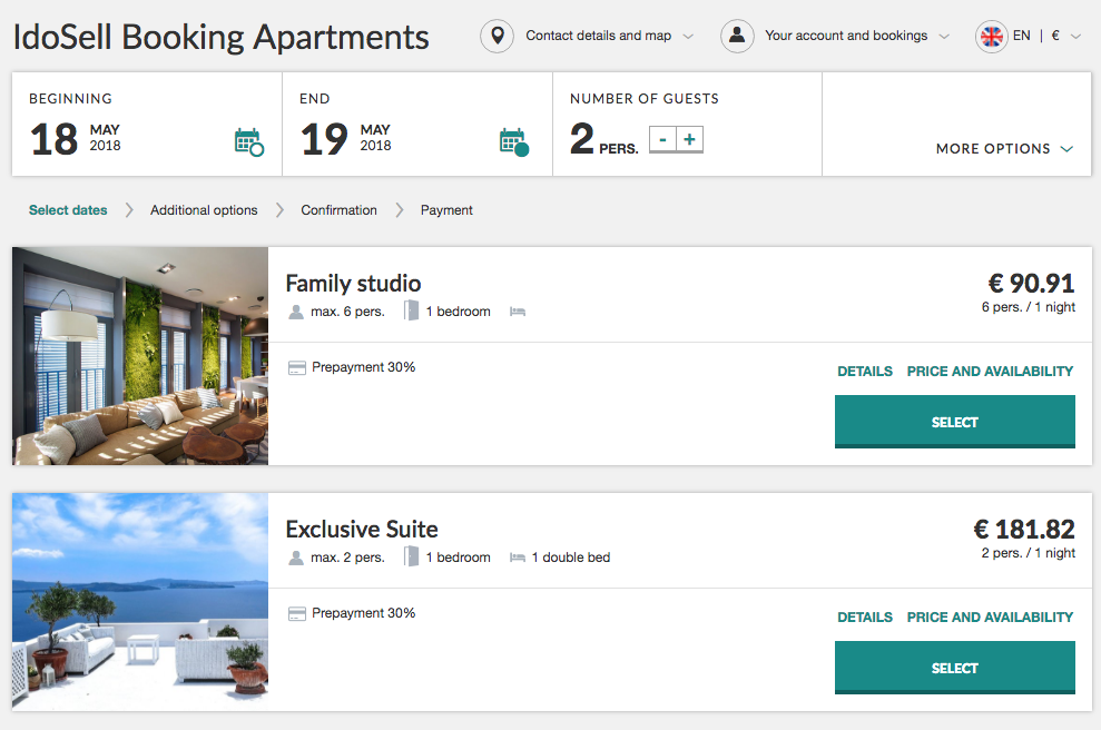 Thanks to connection with IdoBooking Channel Manager, your offer can be displayed on the list of search results in HomeToGo. Choosing the IdoSell offer from the list will redirect users to your Booking Engine, where they can make a direct reservation.