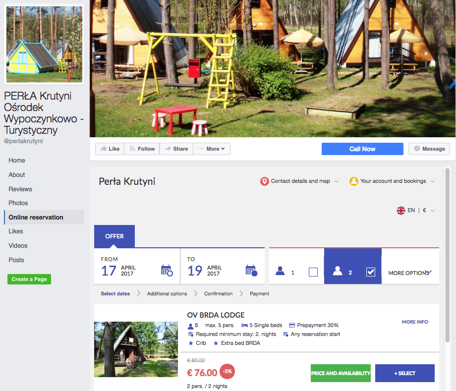 It's worth mentioning that thanks to the Facebook integration, Mr Trzosek can reach various customer groups with his offer. It translates into the growing number of reservations, especially from the Polish communities abroad. This is the reason why Perła Krutyni reaches and serves customers from Poland, the USA, Canada and Israel. Each year, we record more and more reservations due to multiple language versions available in our Booking Engine. Language used to be a big barrier for foreign guests. It's a lot better now.