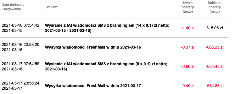 Oprócz podsumowania, w BOK dostępny jest szczegółowy wykaz jakie naliczenia składają się na kwotę dla danej grupy usługi, co sprawia, że rozliczenia z IAI są przejrzyste. Bez problemu i dodatkowych pytań, jesteś w stanie sprawdzić co składa się na daną fakturę.