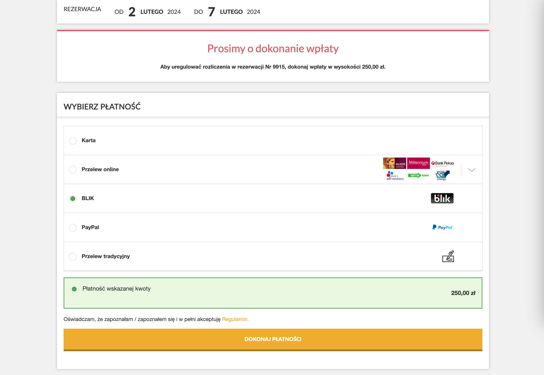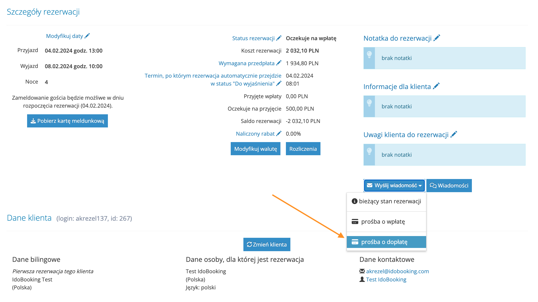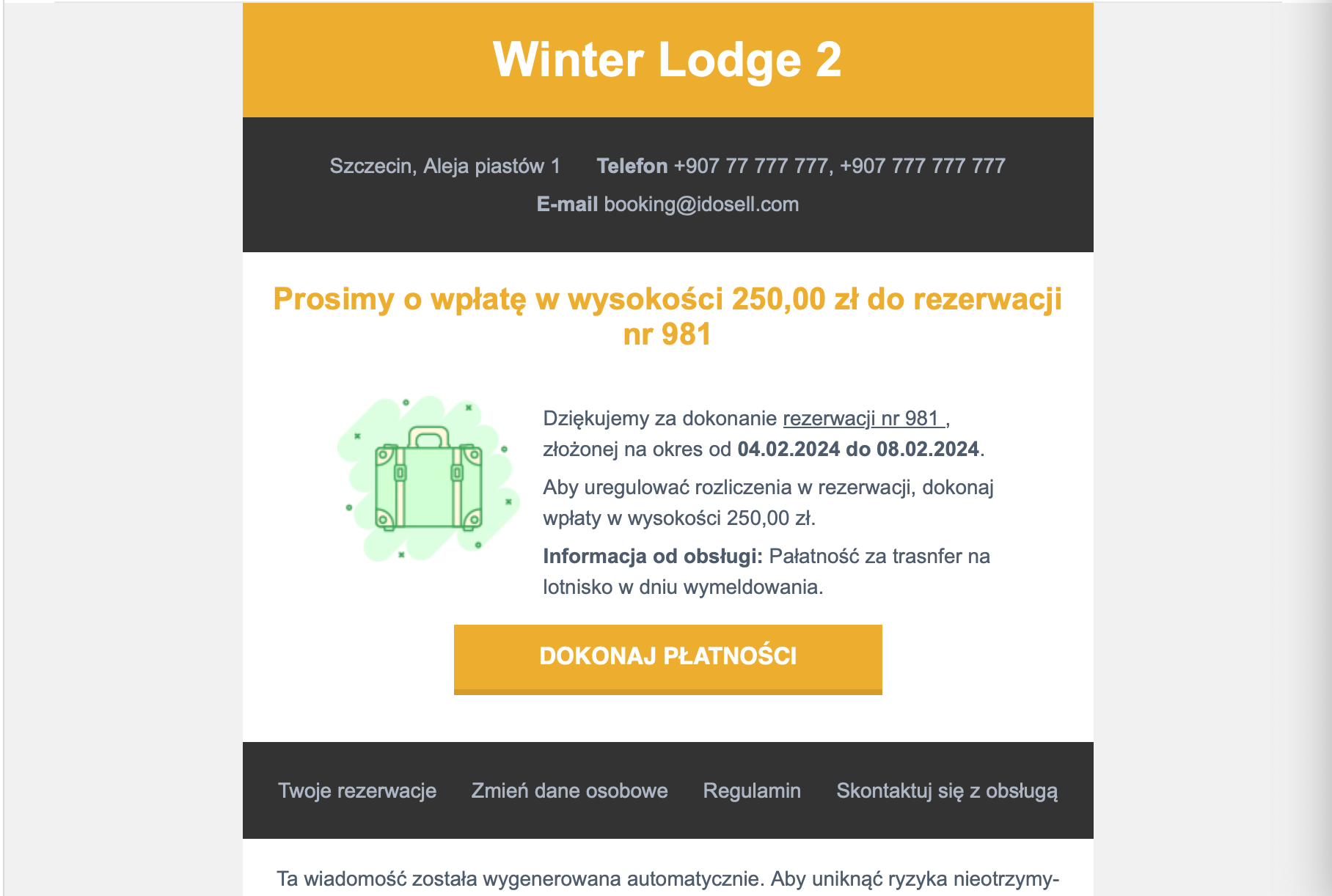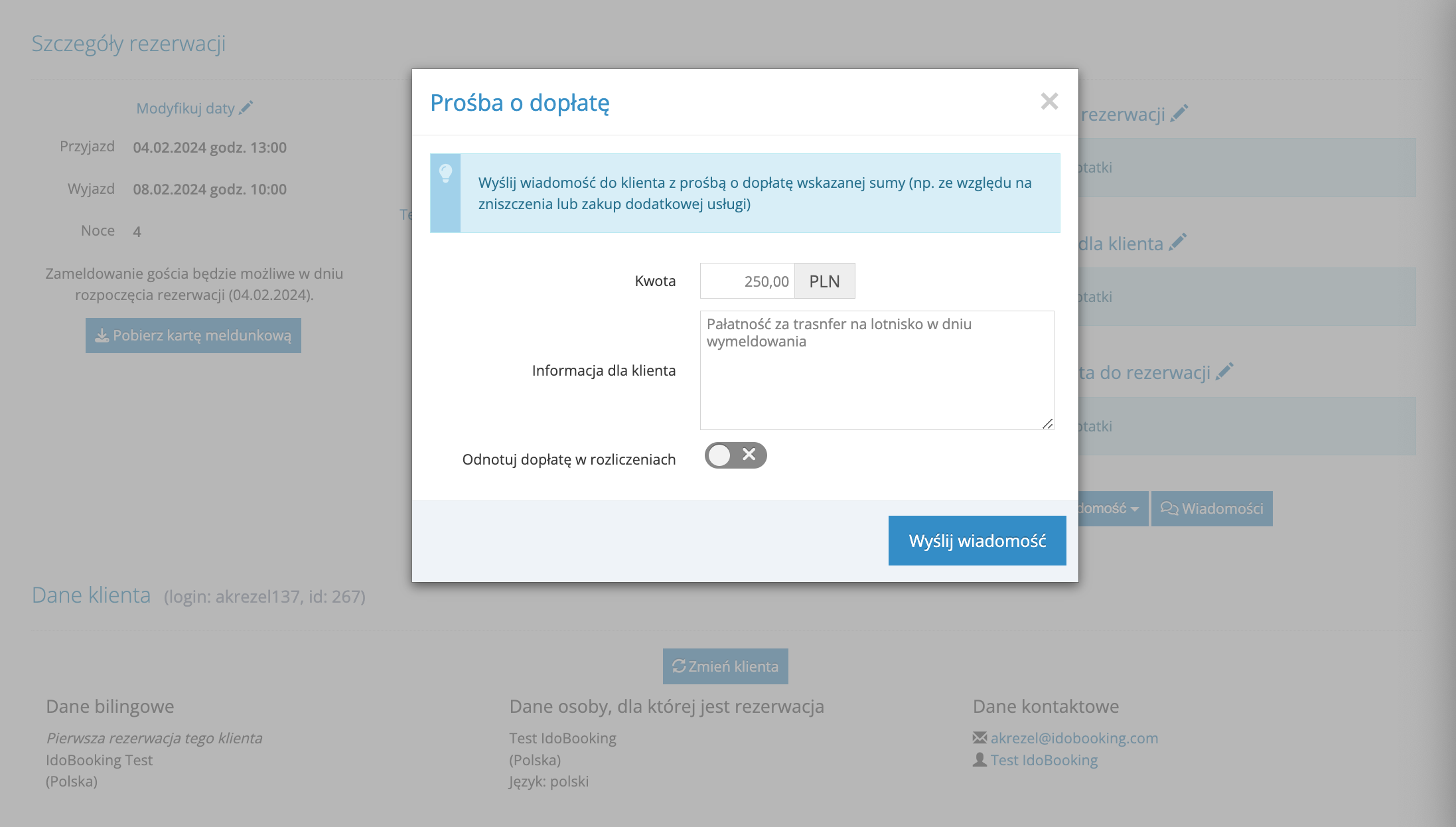 Wysyłka prośby o wpłatę była ściśle związana z saldem rozliczeń rezerwacji