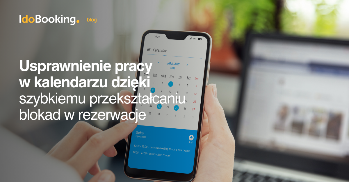 Kalendarz rezerwacji IdoBooking daje możliwość wprowadzania rezerwacji, ofert oraz blokad dostępności. Dwie pierwsze opcje pozwalają na dodanie danych kontaktowych klienta, wprowadzenie dodatków, a także pokazują cenę za usługę oraz obecny stan rozliczeń gościa. Natomiast w przypadku blokad wprowadzone mogą być tylko notatki ze skrótowymi informacjami. Co więcej, system nie przechowuje ich historii, co oznacza, że gdy minie ostatni dzień ich obowiązywania, znikają z systemu. Ponadto w blokady nie są wyszczególnione na listach nadchodzących przyjazdów/wyjazdów czy analizach. Jeżeli część blokad, w rzeczywistości zamyka dostępność dla konkretnych gości, usuwanie danych może być znacznym utrudnieniem pracy w obiekcie noclegowym. Aby usprawnić pracę, wprowadziliśmy funkcję, która pozwoli na zamianę blokady w rezerwację, za pomocą dosłownie kilku kliknięć.
