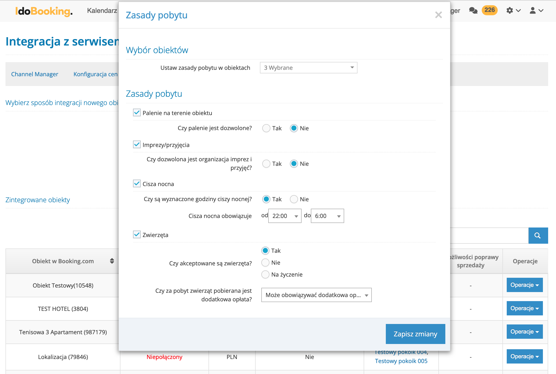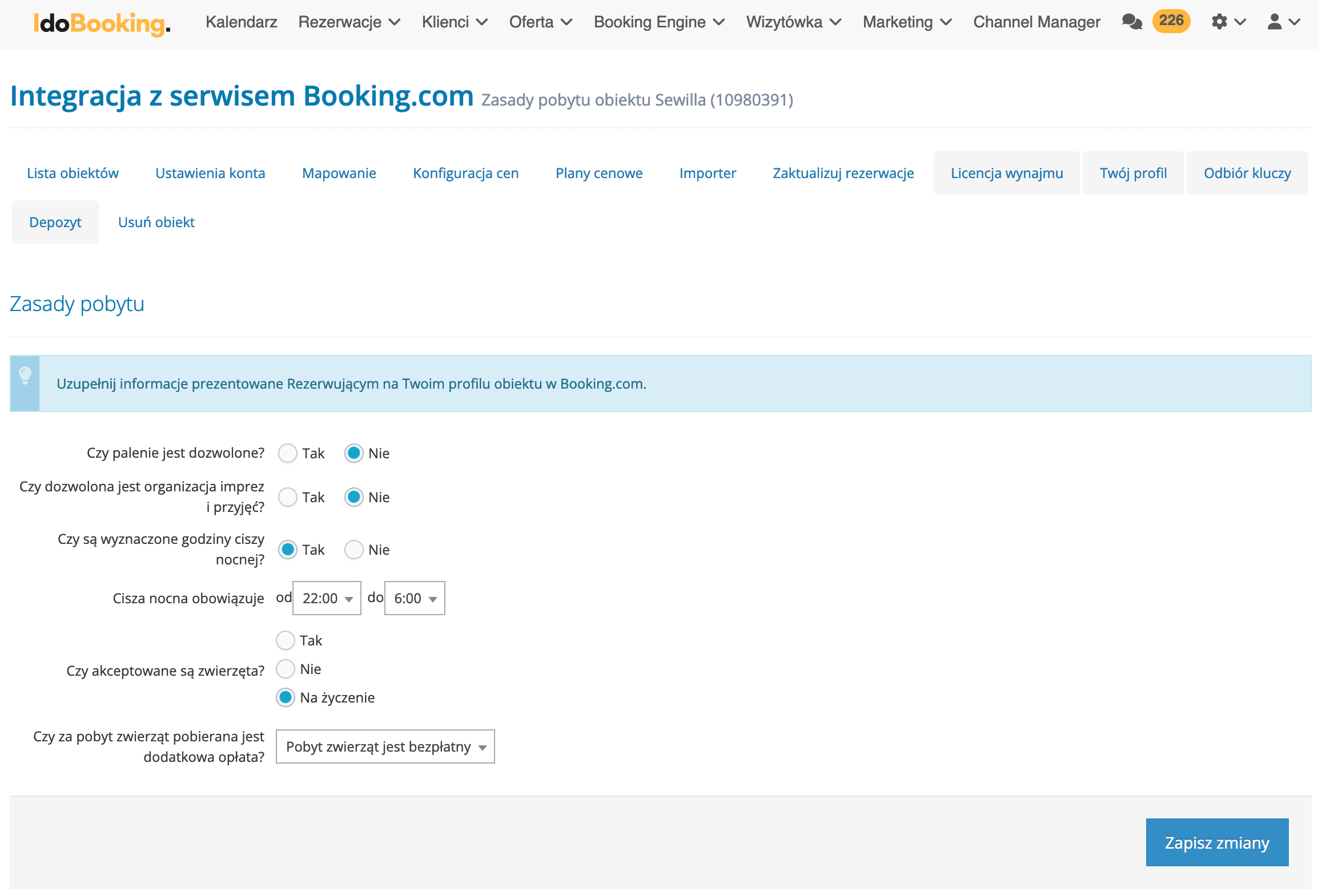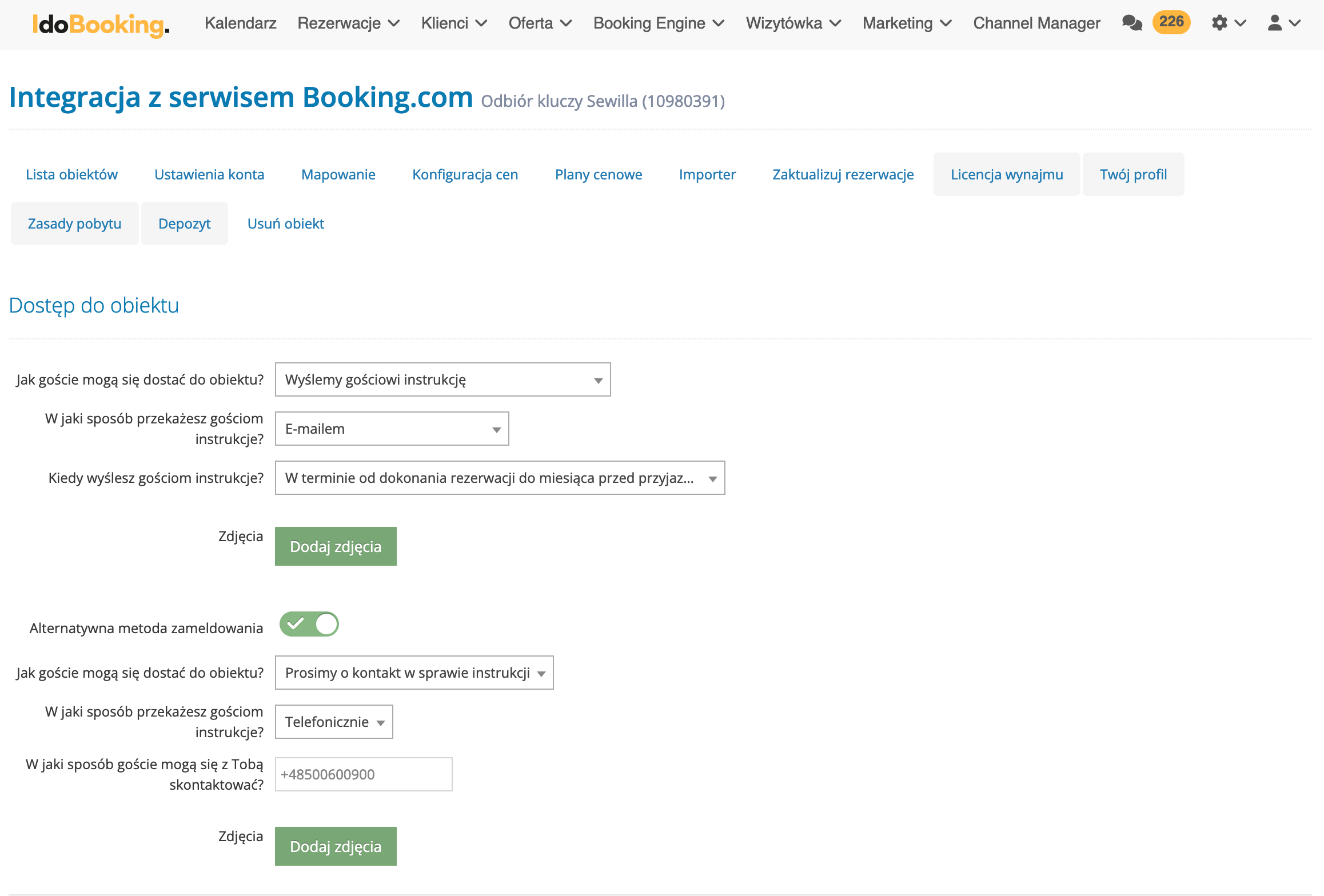 Od teraz możesz wygodnie zarządzać wybranymi ustawieniami obiektu na Booking.com bezpośrednio z panelu IdoBooking. Dodaliśmy kolejne opcje konfiguracji kluczowych danych w Booking.com i osadziliśmy je bezpośrednio w naszym panelu. Dzięki temu nie musisz przełączać się między kontami Twoich apartamentów, żeby zmienić ustawienia: zasad pobytu, odbioru kluczy, depozytów, profilu twojej firmy czy też licencji wynajmu.