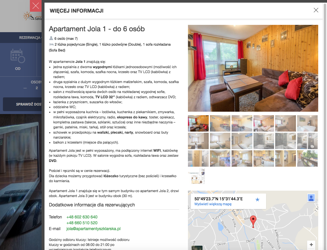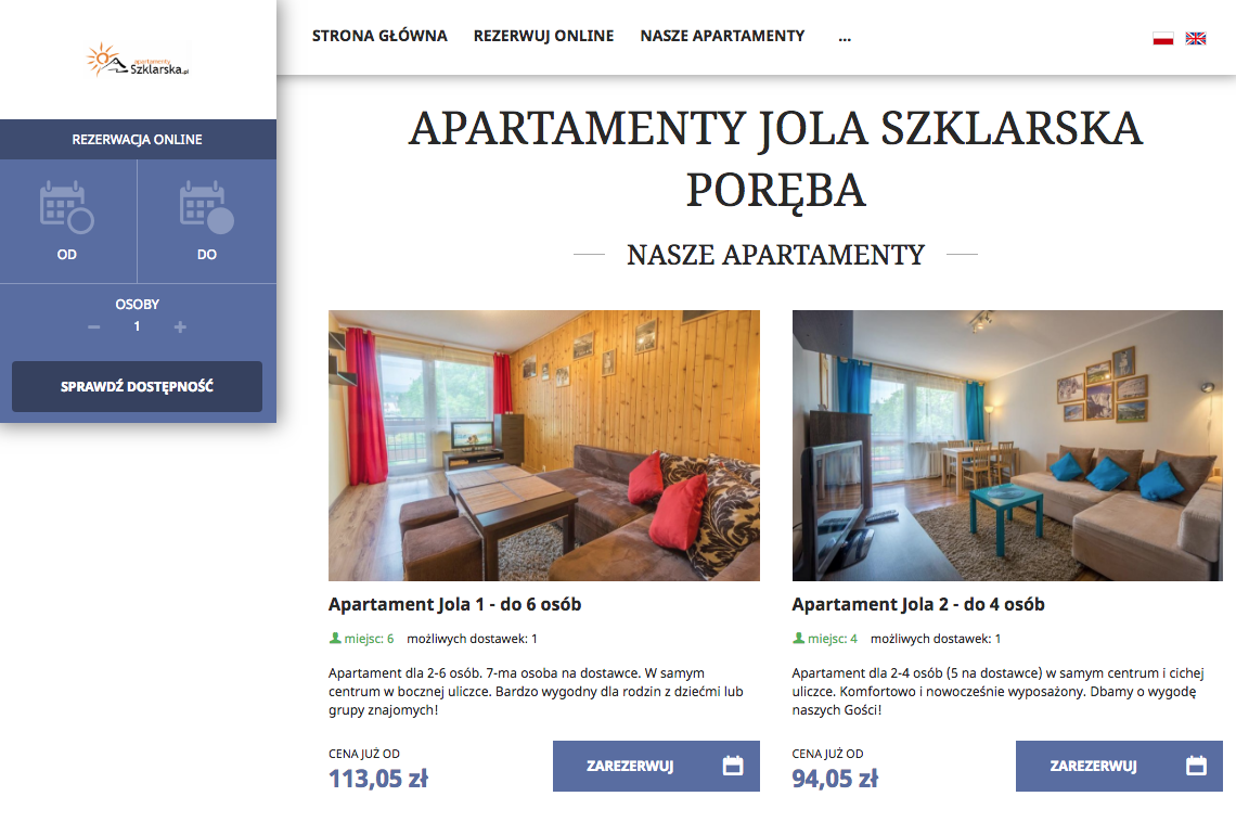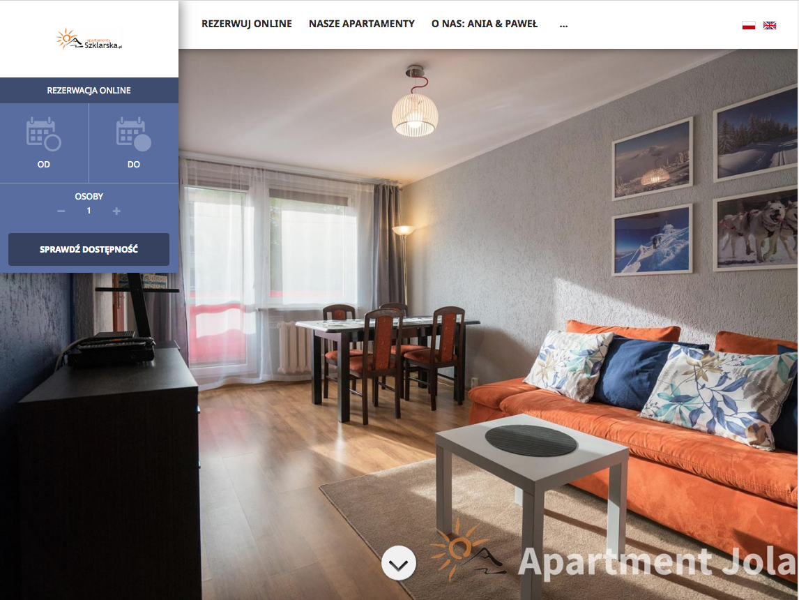 "IdoBooking to bardzo rozwojowy system, dzięki któremu możemy jako niewielki obiekt noclegowy, wdrożyć sprzedaż noclegów on-line. Zarządzanie apartamentami jest łatwe i umożliwia odpowiednie dopasowanie informacji do naszych obiektów. Prezentacja apartamentów na stronie internetowej - darmowej wizytówce - jest przejrzysta i łatwa do czytania przez turystów. Instalacja widgetu rezerwacji na stronie internetowej www.apartamentyszklarska.pl przebiegła bardzo szybko. Korzystanie z systemu rezerwacji przez klientów jest łatwe i umożliwia turystom sprawdzenie dostępności i ceny wynajęcia mieszkań w pięknych polskich górach. Zespół IdoBooking jest otwarty na wszelkie uwagi, co zasługuje na specjalne słowa uznania. Przekazywane sugestie są wdrażane szybko, a co najważniejsze tak, aby pasowały do naszej działalności. Pomimo nowego systemu korzystamy z niego ze względu na łatwość uruchomienia i konfiguracji, ale także przez niskie koszty utrzymania. System na pewno sprawdzi się w małych i średnich obiektach noclegowych."