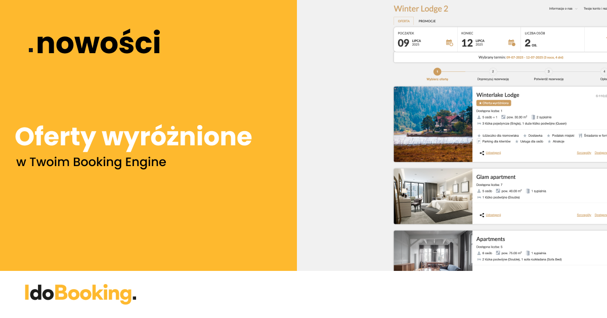 Nowe możliwości filtrowania w Booking Engine – szybsze i bardziej precyzyjne wyszukiwanie ofert Szybsze i wygodniejsze filtrowanie noclegów dla Twoich gości: znalezienie idealnego noclegu może być wyzwaniem, zwłaszcza gdy oferta obejmuje dziesiątki różnych obiektów. Właśnie dlatego wdrożyliśmy n... Przeczytaj wpis