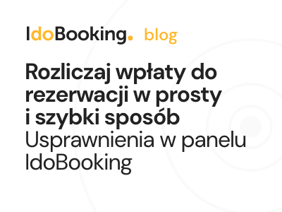 Rozliczaj wpłaty do rezerwacji w prosty i szybki sposób. Usprawnienia w panelu IdoBooking Rozliczanie wpłat do rezerwacji, nie było tak proste. Teraz szybko oznaczysz w panelu zrealizowane płatności kartą płatniczą przez terminal, gotówką, przelewem czy bonem turystycznym. Dodatkowo masz m... Przeczytaj wpis